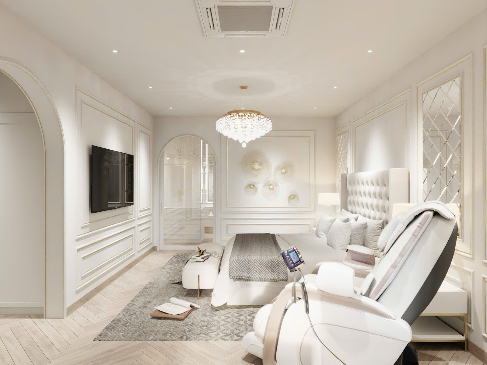 White penthouse – biểu tượng mới của phong cách sống tinh tế. Với tone màu trắng chủ đạo cho toàn bộ không gian, cùng các sản phẩm nội thất thuộc dòng luxury.